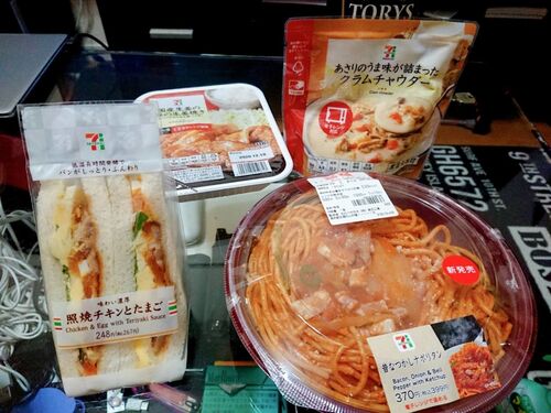 本日のお酒のお供はこちら セブンイレブンの 昔なつかしナポリタン照り焼きチキンとたまごサンド 前回食べきれなかった クラムチャウダー国産生姜の生姜焼き まずは生姜焼き しっかり味がついててうまい このままでも十分おいしいのですが マヨネーズイン!…