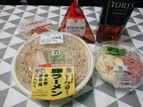 本日の晩酌のお供はこちら セブンイレブンの 豚の味噌漬け焼き たっぷりハムとポテトサラダ とみ田監修豚ラーメン おつまみ長芋(前回の余りもの) それではビールをセットして乾杯 まずはこちら おつまみ長芋で一杯やってきます この長芋 セブンおつまみラン…